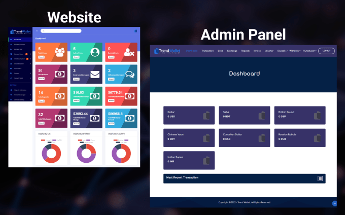 Money Transfer Digital Wallet Website and Laravel Admin Panel